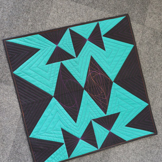There was this mini quilt made from a TMQG block lotto challenge. It happened when COVID hit last March so very few blocks were in the pot. I quilted it with beige thread shortly after I purchased my long arm. And I hated it so much I ripped it all out and tried again with a nice purple...and then played with a bit of orange at the end. It's a good reminder to test out ideas with small projects.